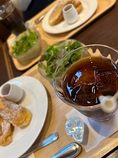 お疲れさまです✨ 先日カフェのモーニングに地元の友人と一緒に行って来ました☕️🍴 種類が沢山あって迷ったので違うものをお互い頼んでシェアするつもりでしたが、ふたりもフレンチトーストが良いってなっちゃって!🥖笑 お揃いのメニューになりました🍽️ 朝からペロリと完食です😋 サラダのドレッシングもオリジナルで美味しかったので次回来店の際には購入して帰ろっと😊✌️