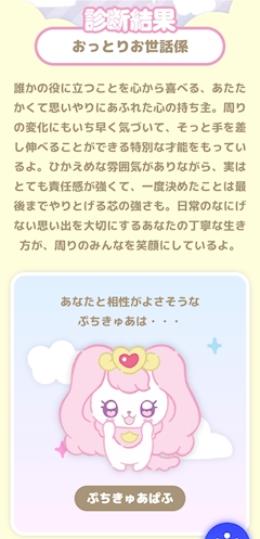 プリキュア好きなので ぷちきゅあ診断 というものを してみました🙊w 結果は… あたし… お世話されたい🤣w