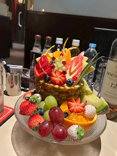 こんばんは⭐️お疲れさまです✨ フルーツの飾り切りが可愛くて美しい🫶 シャインマスカットもイチゴもパイナップルも甘くて美味しくて、幸せな気分になれました🍇🍓🍍 ありがとうございます✨ごちそうさまでした😋